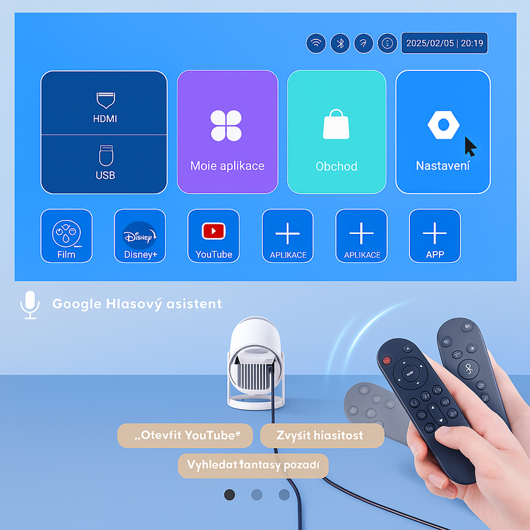 Projektor KnihoProjekctor™ má předinstalovaný YouTube a snadno si můžete nainstalovat stovky dalších streamovacích aplikací, jako je například Netflix, prostřednictvím obchodu s aplikacemi.