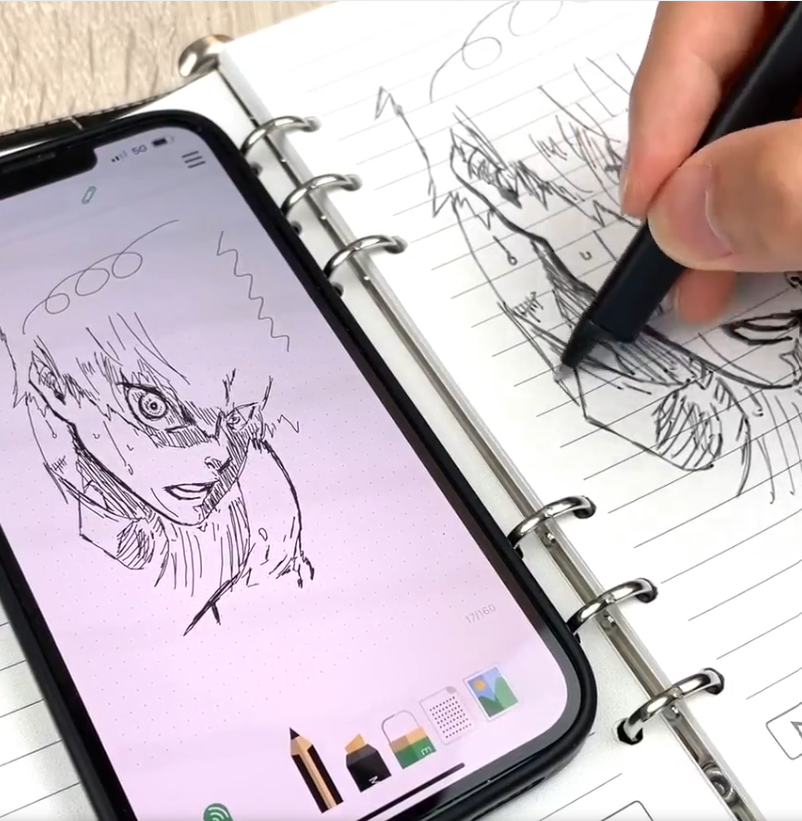 Ne! Naše SmartPen má vysoce rychlou infračervenou kameru, která okamžitě zachycuje vaše skici, stejně jako náš vysoce technologický papír obsahuje unikátní mikro-tečkový vzor, který detekuje a odesílá signály do vašeho telefonu, čímž zajišťuje žádné prodlevy.