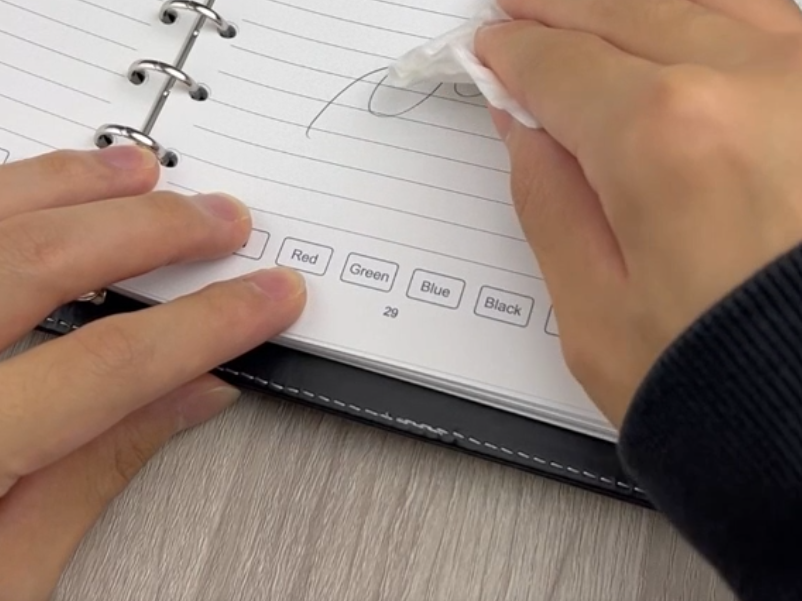 Můžete to rychle setřít z opakovaně použitelného papíru pomocí vlhčených ubrousků!