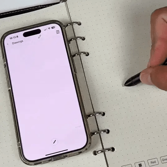 Bohužel ne. náš vysoce technologický papír obsahuje unikátní mikro-tečkový vzor, který detekuje a odesílá signály do vašeho telefonu. To je také důvod, proč můžete "magicky" měnit barvu pouhým poklepáním na papír. Proto náš SmartPen funguje pouze s naším papírem, pokud chcete synchronizovat svou práci s telefonem.